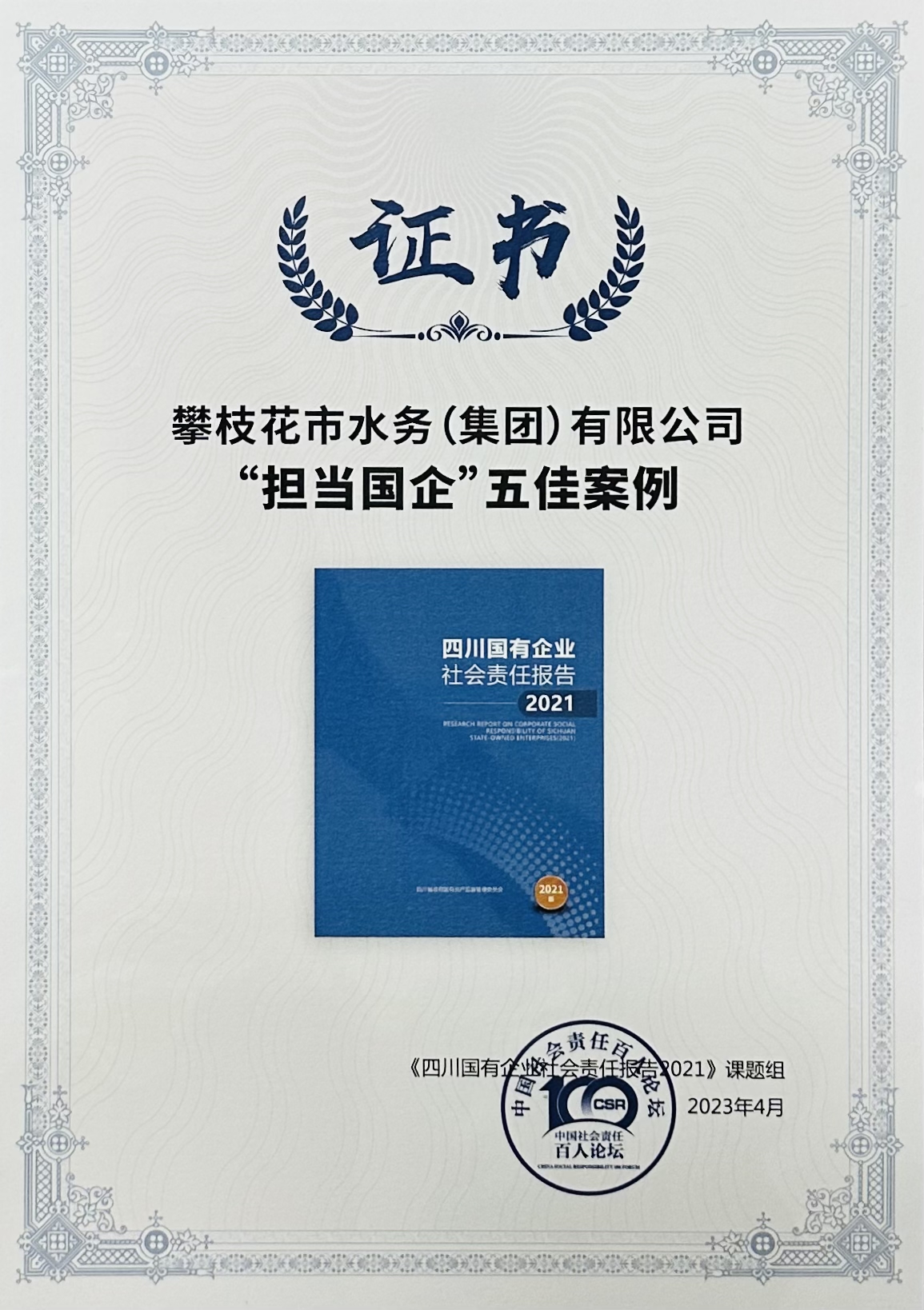 先后榮獲了全國模范勞動關(guān)系和諧企業(yè)、全國“五一"勞動獎狀、全國“安康杯競賽活動優(yōu)勝單位"、中國供水排水行業(yè)突出質(zhì)獻(xiàn)單位獎、全國模范職工之家、國家建設(shè)部精神文明建設(shè)先進(jìn)單位、發(fā)揚(yáng)“水之魂”精神為震后重建再立新功、四川省“五一”勞動獎狀、四川省誠信示范單位、四川省先進(jìn)企業(yè)、四川省大中型工業(yè)企業(yè)500強(qiáng)、四川省水的生產(chǎn)和供應(yīng)最效益十強(qiáng)最大規(guī)模十強(qiáng),攀枝花市企業(yè)50強(qiáng),攀枝花市A級納稅單位等數(shù)十項帶譽(yù)稱號。